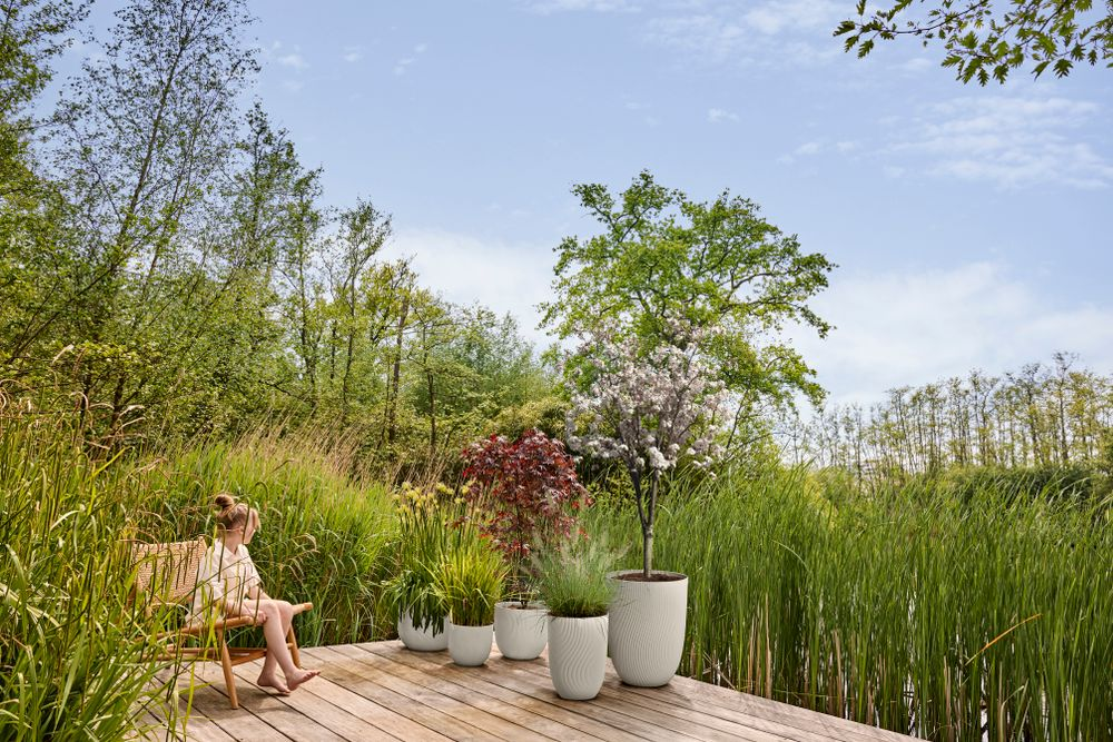 Le pot rond sereh d'elho est plus qu'un simple pot de fleurs - c'est une pièce d'apparat. Inspirées par l'herbe qui se balance, sa texture et sa finition uniques apportent une touche douce et organique à tout espace intérieur ou extérieur. Fabriqué dans un matériau durable aux couleurs inaltérables qui résiste aux intempéries, ce pot élégant conservera sa beauté saison après saison. Vous envisagez d'utiliser ce pot à l'intérieur ? Il suffit d'insérer le bouchon vert dans le tuyau de trop-plein, et le tour est joué !